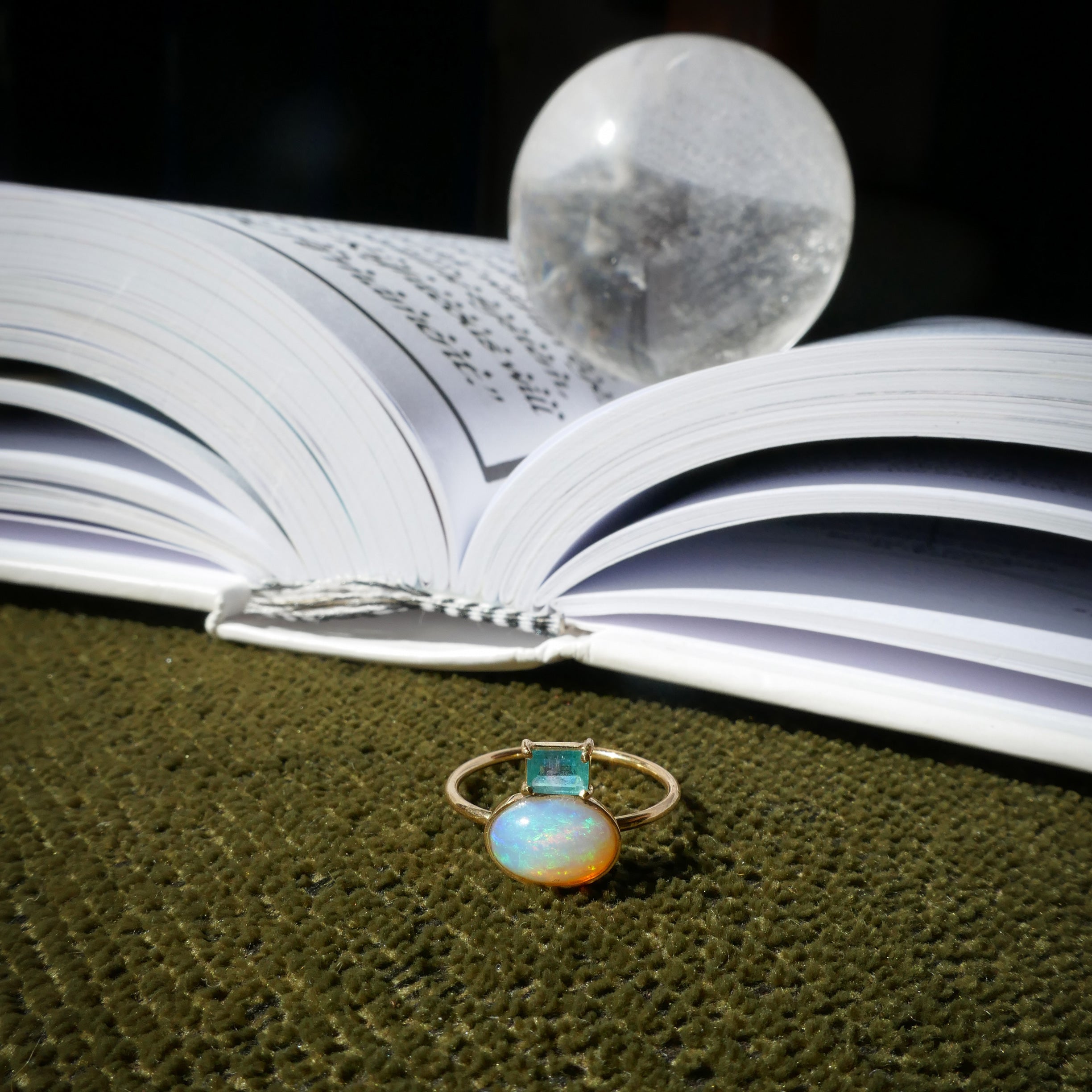 Receitas milenares de infusões de pedras em óleos vegetais são cuidadosamente preparadas com esmeraldas.