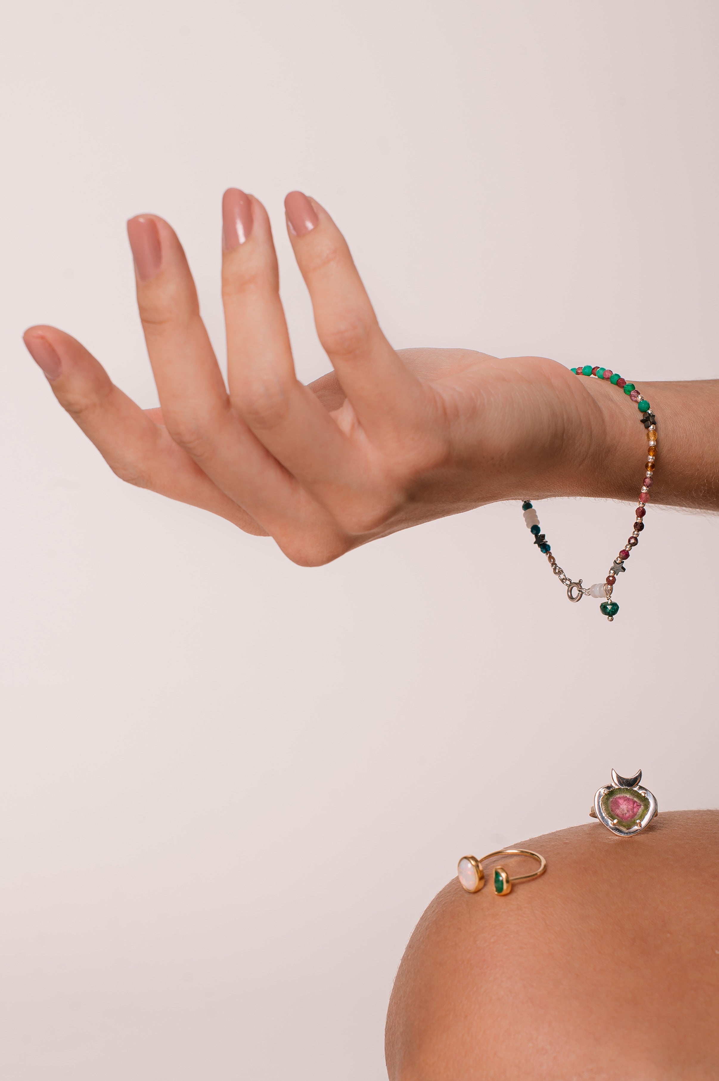 As joias Mamacoca são joias de poder: peças autorais em ouro, prata e pedras naturais, pensadas como amuletos para acompanhar seus rituais diários – não apenas enfeites. Cada coleção nasce de uma pesquisa estética e espiritual, inspirada em culturas ancestrais e na história da Terra.