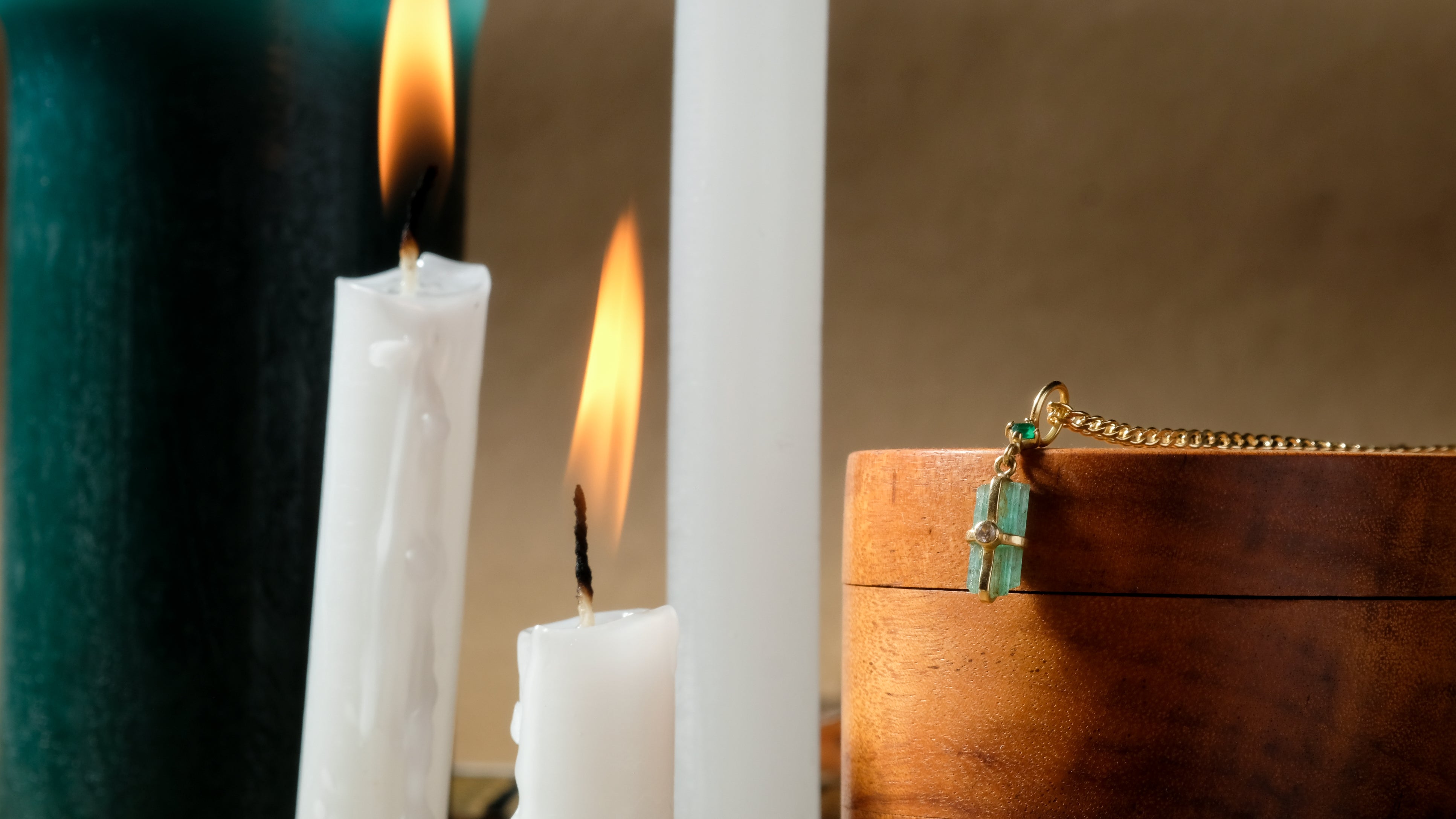 Receitas milenares de infusões de pedras em óleos vegetais são cuidadosamente preparadas com esmeraldas.