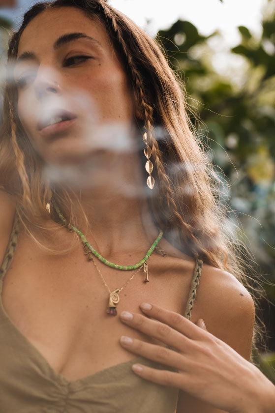 Desde 2012, Livia canaliza essa riqueza cultural e espiritual na criação de joias e amuletos únicos.