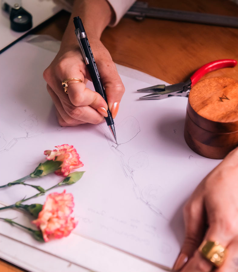 Desde a escultura em cera, até o acabamento manual, passando por recortes e aquarelas e chegando ao design 3D, cada detalhe é meticulosamente trabalhado.